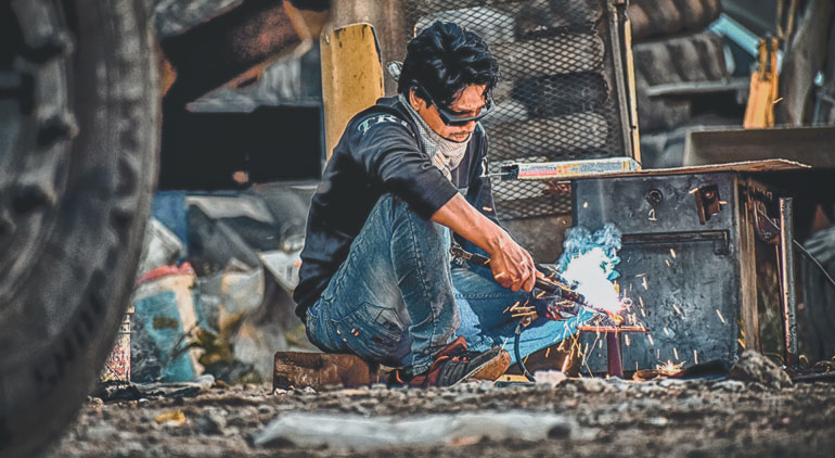 The welding output is on